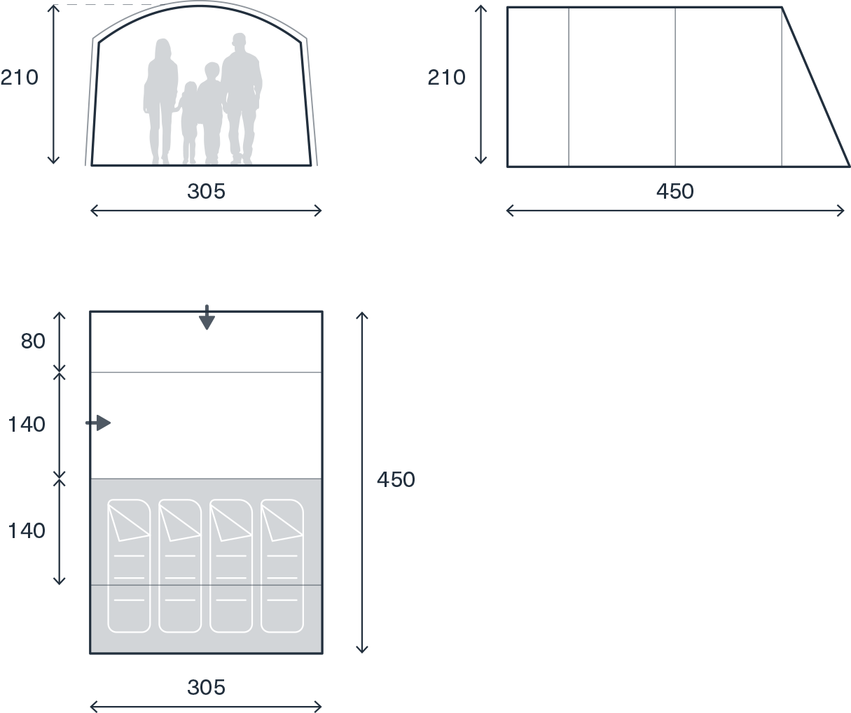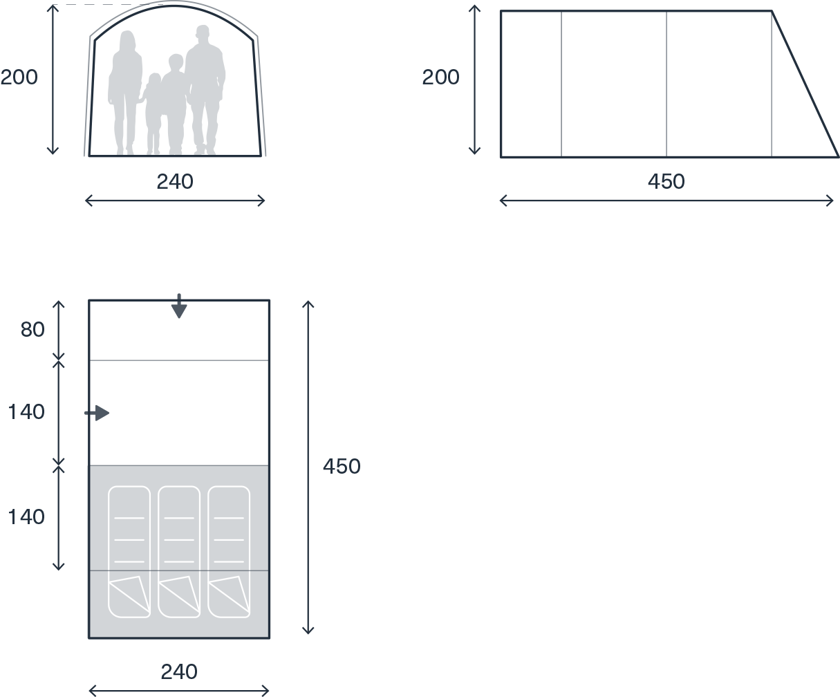 The Dawlish is your dependable base camp for everyday escapes. It features an enclosed inner tent, sewn-in groundsheet, and a standing-height tunnel. Built with durable 75D polyester and fibreglass poles for reliable shelter on every adventure.